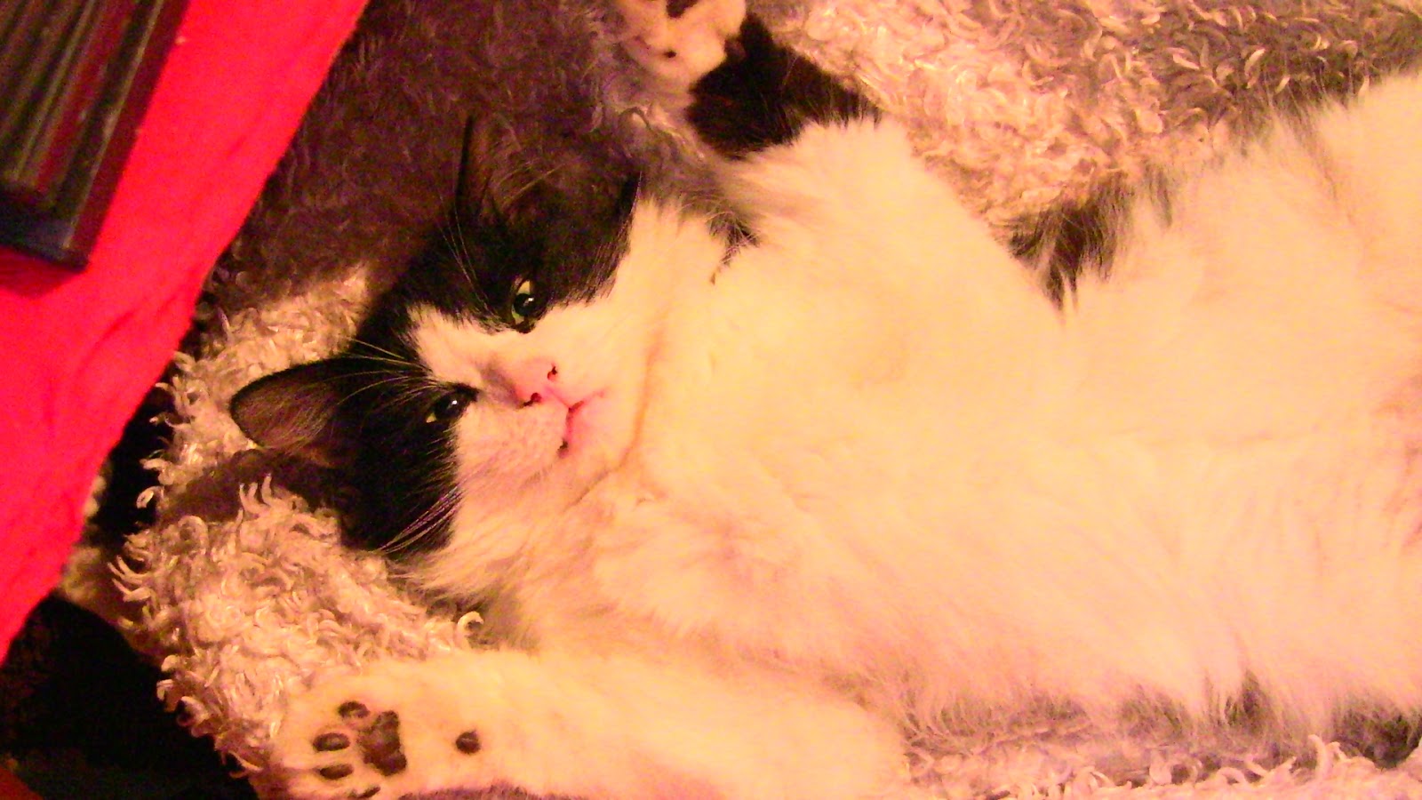Kimite laughed at what she saw. Little Benjie (A family member and greatly beloved by owner Sacha) was nicely sleeping on a fluffy purple bean-bag chair looking so cute!